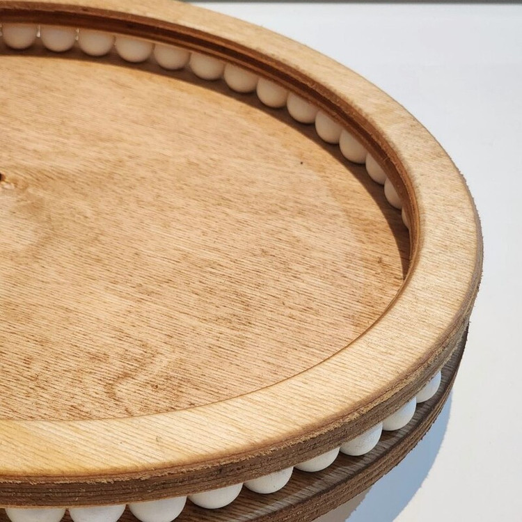 در لبهی سینی از **گلمیخهای سفید سرامیکی** استفاده شده که جلوهای لوکس و چشمنواز به آن دادهاند و باعث شده ظاهرش از سینیهای معمولی متمایز باشد.ویژگیهای جذاب برای معرفی محصول: