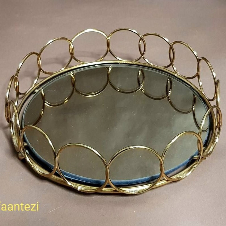 سینی پذیرایی کف آینه طرح المپیک گرد - فانتزی