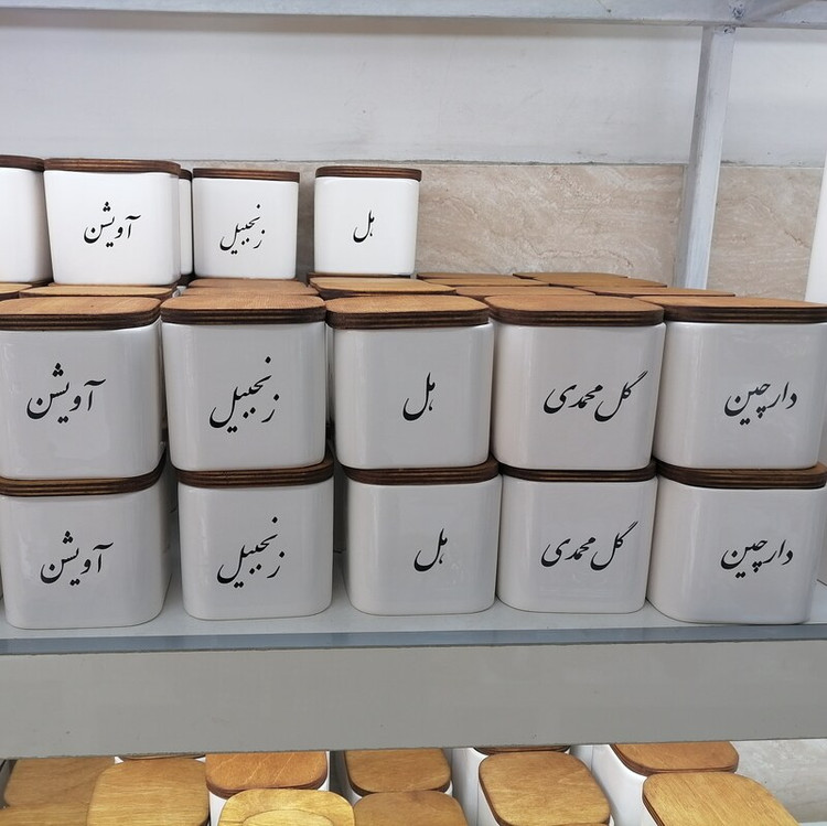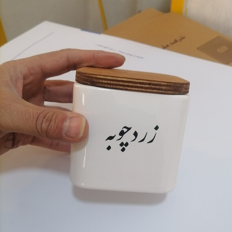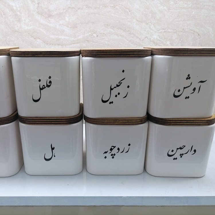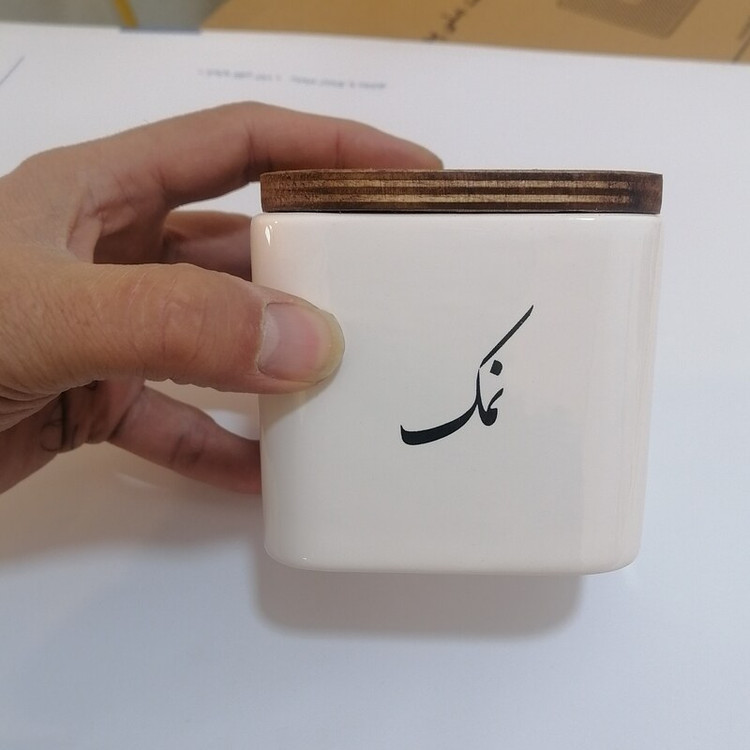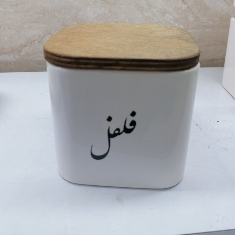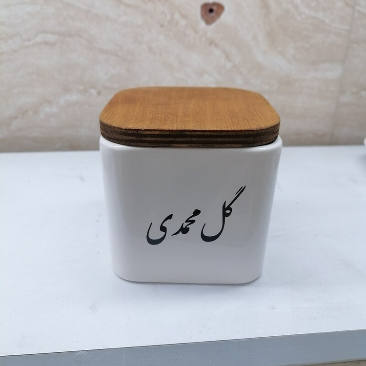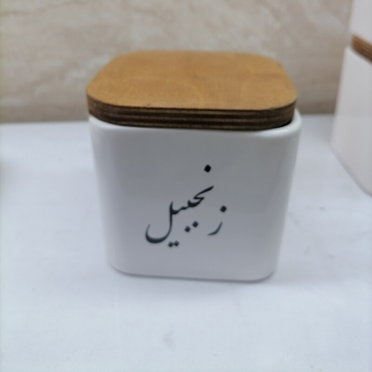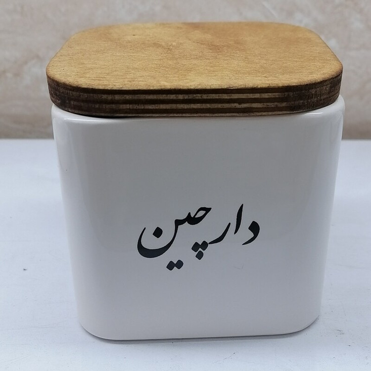 ### بانکه سرامیکی مربع با درب پلی وود روس – نگهداری ادویه به سبک خاص 🎉