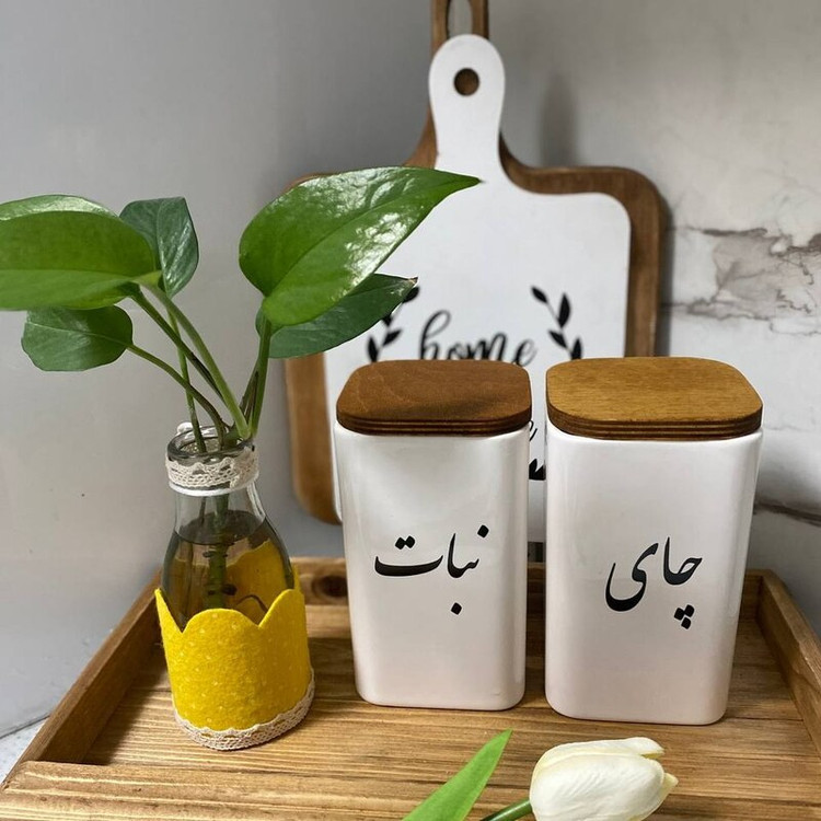 ### بانکه سرامیکی دو عددی با درب چوبی - زیبایی و کاربرد در آشپزخانه شما! 🍵✨