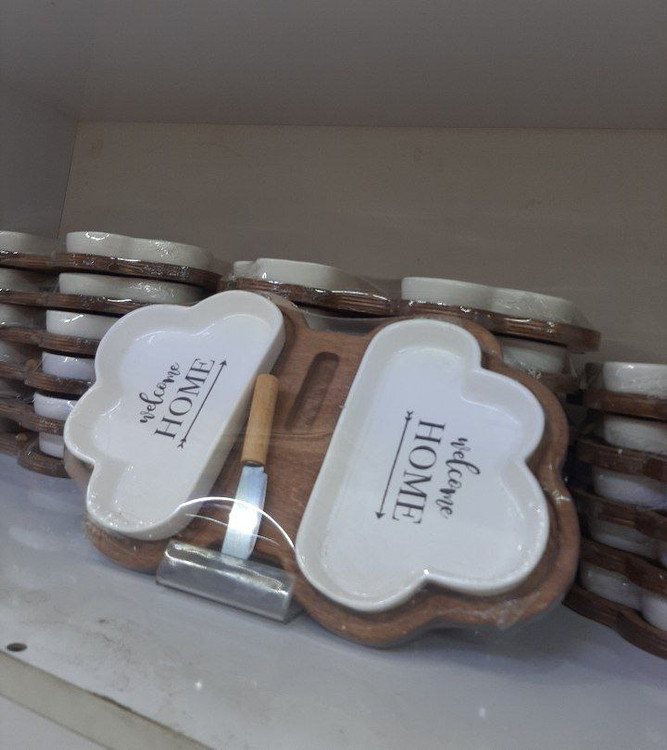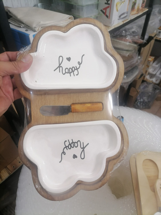 2 ست سرامیکی طرح ابر + زیره چوبی + چاقو