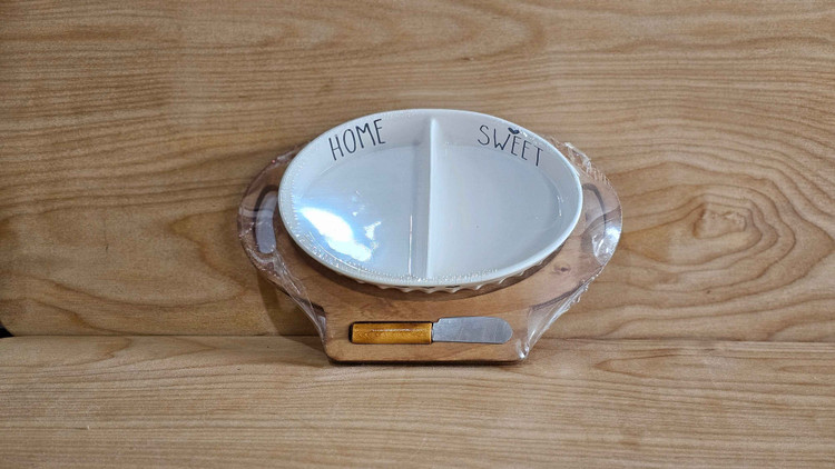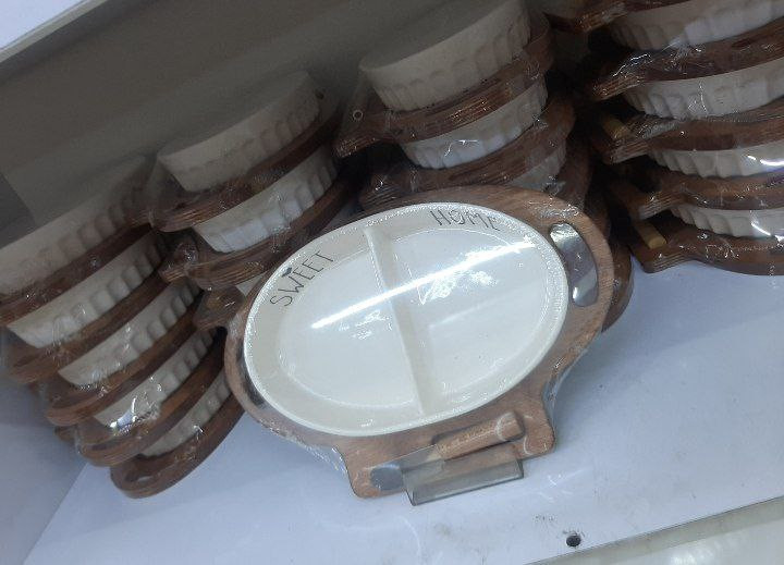2 ست سرامیکی طرح بیضی + زیره چوبی + چاقو