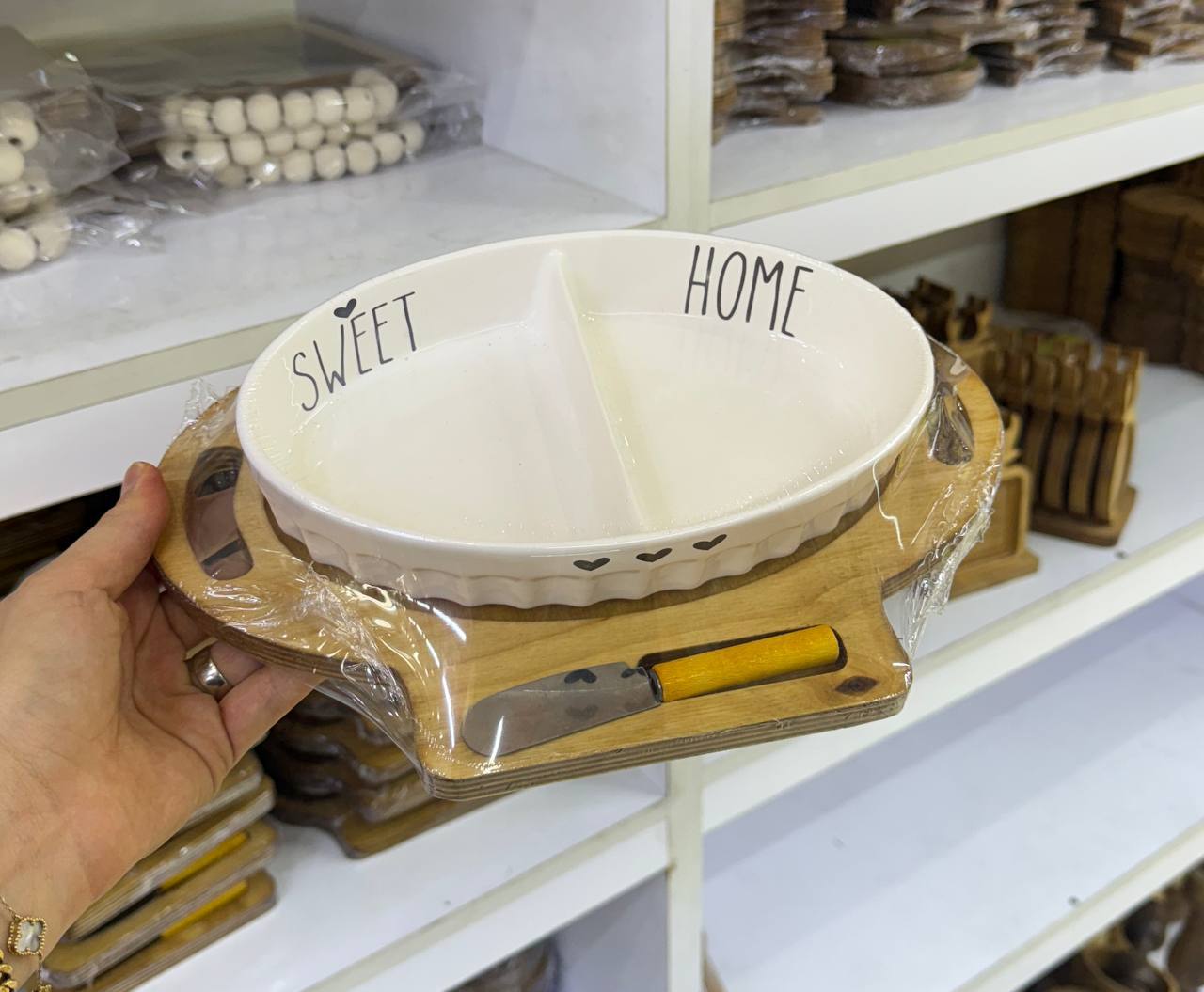 2 ست سرامیکی طرح بیضی + زیره چوبی + چاقو