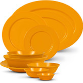Unbreakable melamine dinnerware set, 41 pieces, orange design