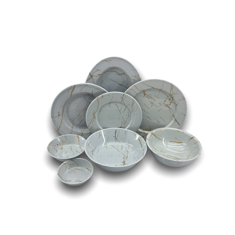 سرویس ملامین نشکن ۳۵ پارچه طرح ماربل طلایی