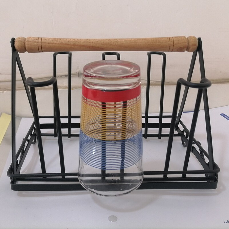 جا لیوانی رومیزی با دسته چوبی - رنگ مشکی کوره ای قابل شستشو