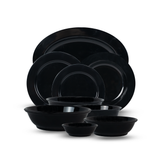 Unbreakable melamine dinnerware set, 35 pieces, glossy black design