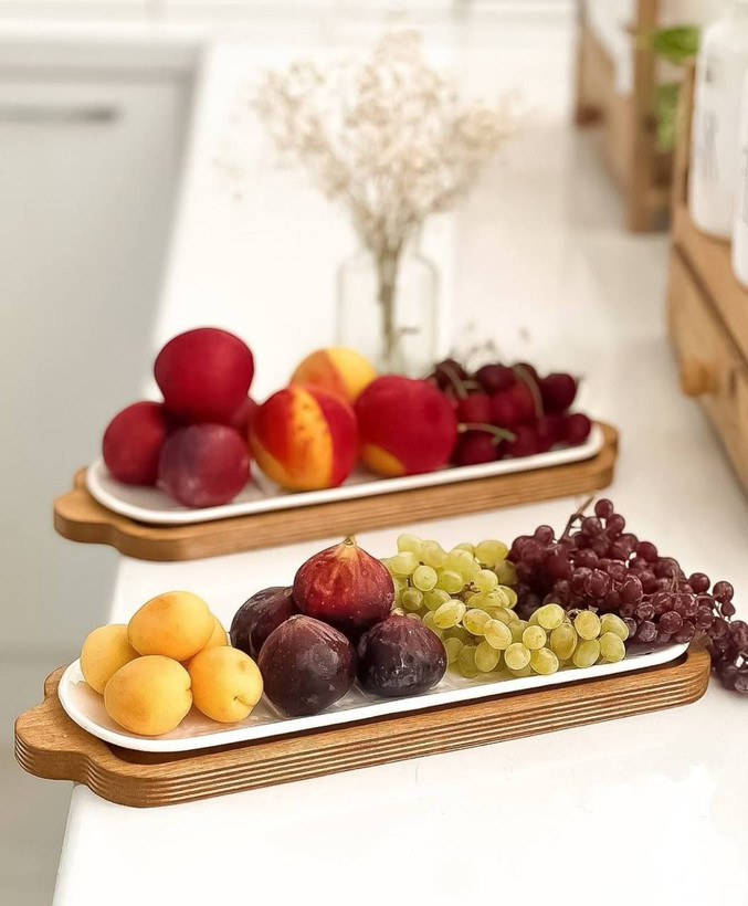 آیا به دنبال یک ظرف سرو منحصر به فرد و زیبا هستید که هر میز غذایی را به یک اثر هنری تبدیل کند؟ رولت خوری چوبی و سرامیکی ما، با طراحی ساده و شیک، گزینه ای ایده ال برای شماست! این ظرف با ابعاد 34 * 11 سانتیمتر، به راحتی میتواند میز صبحانه، سرو میوه یا حتی رولتهای خوشمزه شما را به بهترین شکل ممکن به نمایش بگذارد. 🍰🍏