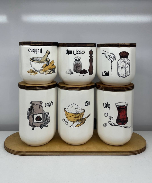 بانکه سرامیکی بزرگ و ادویه دوازده ضلعی مدل رنگی - کوتاه و بلند
