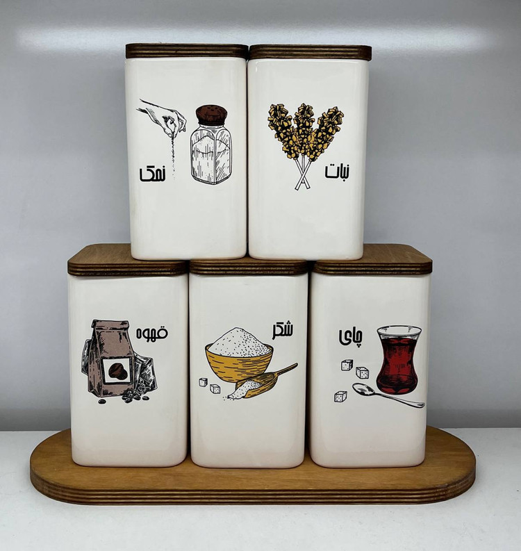 بانکه سرامیکی مربع بلند فارسی طرح رنگی - پک 5 عددی