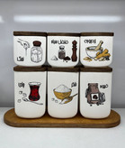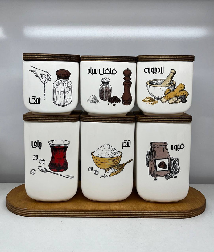 ### بانکه و جا ادویه سرامیکی 6 تکه با درب چوبی 🌼