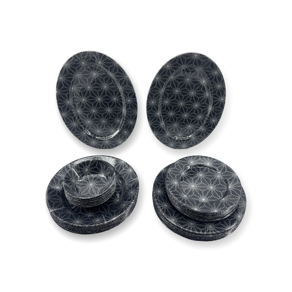 Unbreakable 26-piece melamine dinner set with gold and silver design