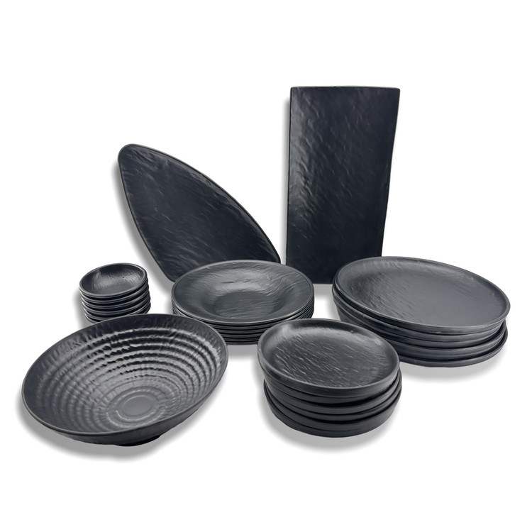 Unbreakable 27-piece leather-patterned cafe restaurant service